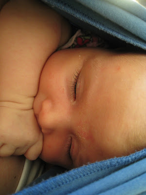 Tjejen trivs bäst att vara nära nära hela tiden, hon älskar att vara inlindad i sjalen!